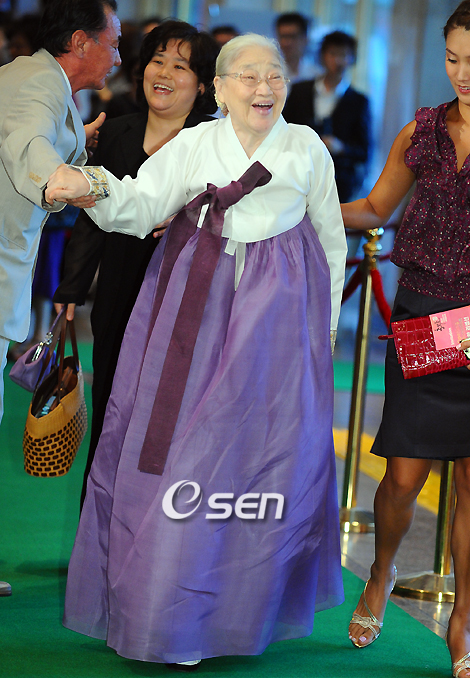 올해로 3회째를 맞는 '서울충무로국제영화제'(조직위원장 정동일, 집행위원장 이덕화) 개막식이 24일 저녁 서울 세종 문화회관에서 열렸다. 도심 속 영화제인 서울충무로국제영화제는 '어제, 오늘 그리고 내일'이란 주제로 세종문화회관에서 개막식을 열고 40개국에서 출품된 214편의 작품 상영이 상영된다. 김대중 전 대통령 서거로 경건하고 차분하게 진행되며 축하공연과 레드카펫 이벤트 등이 대거 취소됐다. 기존 60m 길이로 예정됐던 레드카펫은 김 전 대통령 서거로 약 15m 길이의 평화와 깨끗함을 상징하는 '그린카펫'으로 대체됐다. 원로 배우 황정순이 그린카펫을 밟으며 입장하고 있다./윤민호 기자ymh@osen.co.kr
