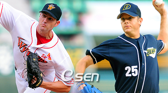 SK라는 공통 분모로 인연이라 부를 수도 있겠지만 지금은 라이벌팀 소속에 있어 악연이라고도 할 수 있겠다. SK 우완 게리 글로버(33)와 두산 크리스 니코스키(36) 두 외국인 투수간의 맞대결이 펼쳐진다. 글로버와 니코스키는 25일 문학구장에서 열리는 3위 홈팀 SK와 2위 원정팀 두산간의 피할 수 없는 맞대결에 각각 선발로 등판한다. 흥미로운 것은 두 투수의 공통 분모가 SK라는 점이다. 글로버는 니코스키의 대체 용병으로 SK 유니폼을 입었고 니코스키는 글로버의 영입과 동시에 방출됐다 극적으로 두산에 합류했다. 따라서 두 투수가 선발 마운드 맞대결을 펼친다는 점은 치열한 2위 싸움을 펼치고 있는 양팀 분위기와 어울려 더욱 흥미를 끌고 있다. 올 시즌 11경기(선발 10경기)에서 4승 3패 2.73의 평균자책점을 기록하고 있는 글로버는 이번이 두산전 두 번째 등판이다. 지난달 8일 잠실에서 선발 등판해 3⅔이닝만에 5실점(4자책)한 뒤 강판, 시즌 첫 패배를 안았다. 글로버는 이후 3연패 포함 6경기에서 승리를 기록하지 못했다. 그러나 최근 글로버는 다시 살아났다. 지난 9일 광주 KIA전에서 승패를 기록하지는 못했지만 7이닝 2실점으로 호투한 뒤 14일 대전 한화전에서 8이닝 무실점으로 거의 6주만에 승리투수가 됐다. 이어 19일 사직 롯데전에서 7이닝 1실점, 연승으로 완전히 구위를 회복했다. 글로버로서는 안방에서 설욕할 수 있는 절호의 기회가 생긴 셈이다. 올 시즌 14경기(선발 8경기)에 나와 2승 7패 4.97의 평균자책점을 기록 중인 니코스키도 이번이 두 번째 SK전 등판이다. 지난 2일 잠실에서 선발로 나섰지만 2⅓이닝 동안 5실점 한 후 마운드를 내려갔다. 하지만 최근 니코스키도 안정세로 돌아섰다. 지난 7일 잠실 LG전에서 팀이 0-2로 져 비록 패전을 안았지만 6이닝 1실점으로 퀄리티스타트했다. 이어 13일 잠실 한화전에서 5⅔이닝 6이닝 1실점(비자책)으로 시즌 2승째를 거뒀다. 19일 잠실 LG전에서는 7이닝 3실점해 비록 패했지만 퀄리티스타트로 확실하게 선발로 자리매김했다. SK에서는 이렇다할 기회를 얻지 못했던 니코스키가 과연 두산 유니폼을 입고 확실한 설욕을 펼칠지 관심사다. letmeout@osen.co.kr 글로버-니코스키.