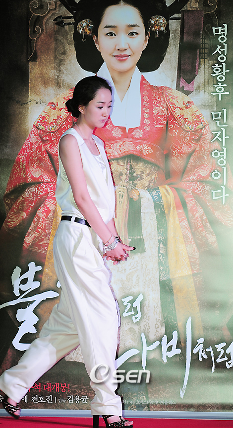 수애 조승우 주연의 영화 '불꽃처럼 나비처럼'(김용균 감독, 내달 24일 개봉예정)의 제작발표회가 25일 오전 서울 동대문 메가박스에서 열렸다. 이 영화는 조선 말기 정치상황을 배경으로 조선을 지키려는 명성황후의 정치활동과 목숨을 바쳐 명성황후를 사랑한 청년 무사의 사랑을 그린다. 수애는 '님은 먼 곳에'에 이어 약 1년 만에 스크린에 복귀했고 그녀를 사랑한 호위무사 역으로 조승우가 낙점돼 수애와 첫 연기호흡을 펼쳤다. 수애가 포토타임을 갖기 위해 무대 앞으로 나서고 있다./민경훈 기자 rumi@osen.co.kr