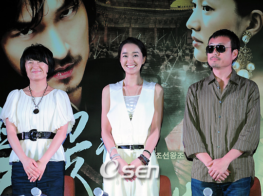 수애 조승우 주연의 영화 '불꽃처럼 나비처럼'(김용균 감독, 내달 24일 개봉예정)의 제작발표회가 25일 오전 서울 동대문 메가박스에서 열렸다. 이 영화는 조선 말기 정치상황을 배경으로 조선을 지키려는 명성황후의 정치활동과 목숨을 바쳐 명성황후를 사랑한 청년 무사의 사랑을 그린다. 수애는 '님은 먼 곳에'에 이어 약 1년 만에 스크린에 복귀했고 그녀를 사랑한 호위무사 역으로 조승우가 낙점돼 수애와 첫 연기호흡을 펼쳤다. 김미희 대표, 수애, 김용균 감독이 기자회견을 마치고 인사를 하고 있다./민경훈 기자 rumi@osen.co.kr
