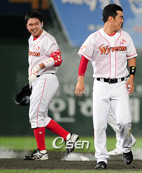 가능성만을 확인받은 채 다른 팀으로 떠나야 했던 유망주는 당당히 실세가 되어 친정팀의 가슴에 비수를 꽂았다. 프로 7년차 내야수 나주환(25. SK 와이번스)이 팀의 상위권 경쟁에 불을 붙이는 통렬한 끝내기 안타를 때려냈다. 나주환은 25일 인천 문학 구장서 벌어진 2009 CJ 마구마구 프로야구 두산 베어스 전 10회말 1사 2루서 상대 우완 김상현(29)의 초구를 그대로 공략, 중견수 이종욱(29)의 키를 넘는 1타점 2루타로 3-2 끝내기 승리를 견인했다. 특히 두산은 나주환에게 친정팀이라 더욱 뜻깊은 끝내기 안타였다. 2003년 2차 2순위로 입단했던 나주환은 2007년 4월 29일 이대수(28)와의 맞트레이드로 SK에 둥지를 튼 뒤 당당히 주전 유격수로 결승타를 때려냈다. 당시 두산은 미래 가치를 주고 주전 내야수를 데려왔다는 트레이드 평가를 받았다. 경기 후 나주환은 "끝내기 안타를 쳐서 기분이 일단 좋다. 초구부터 슬라이더(133km)를 노리고 타석에 나섰고 삼진을 당하더라도 끝까지 변화구를 공략하려고 마음 먹었다"라며 당시 상황을 설명했다. 뒤이어 그는 "앞선 타석서 안타를 때려내지 못해 '다음 타석서 해야 한다'라는 책임감이 있었다. 그러나 타격감이 그다지 좋은 편은 아니었다"라며 "후속 타자 모창민(24)를 믿었다"라며 동료에 대한 애정을 보여주었다. "KIA전 3연패로 인해 침체될 것 같아 경기 전 다시 시작하자는 각오로 경기에 나섰다"라고 이야기 한 나주환은 "승리가 필요한 순간 결정적 역할을 해서 기쁘다"라며 끝내기 안타의 희열을 재차 만끽했다. 김성근 SK 감독은 "선발 게리 글로버(33)가 잘 던졌으나 중심 타선이 불발되면서 고전했다. KIA전서 3연패한 이후 연패를 끊었다는 데 의미가 있다"라며 승리 소감을 밝혔다. 반면 김경문 두산 감독은 "졌지만 선수들 모두 최선을 다했다"라며 선수들의 공을 높이 평가했다. 양 팀은 26일 선발 투수로 각각 전병두(25. SK)와 후안 세데뇨(26. 두산)를 예고했다. farinelli@osen.co.kr '2009 CJ 마구마구 프로야구' SK 와이번스와 두산 베어스의 경기가 25일 인천 문학 구장에서 벌어졌다. 연장 10회말 1사 주자 2루 SK 나주환이 중전 끝내기 안타를 날린 후 동료들에게 분칠 세례를 받고 환하게 미소짓고 있다./문학=민경훈 기자 rumi@osen.co.kr