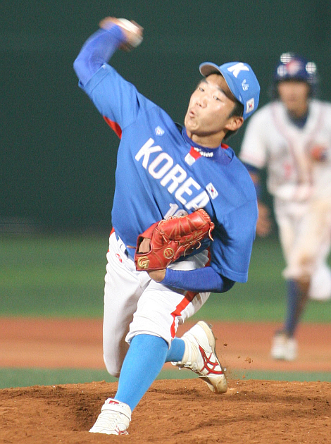 [OSEN=박종규 객원기자] 히어로즈의 예비 신인 문성현(18, 충암고)이 ‘미래의 홈구장’ 에서 역투를 펼쳐 기대를 증폭시켰다. 문성현은 지난 25일 목동구장에서 열린 제8회 아시아청소년야구선수권대회 예선 1차전 대만과 경기에서 한국을 승리로 이끌었다. 이미 익숙해진 마운드에서 고교 정상급 투수다운 면모를 과시했다. 히어로즈의 지명을 받은 후 처음으로 공개적인 투구를 펼쳐 관심을 끌었다. 지난 4월 충암고를 황금사자기 전국고교야구대회 우승으로 이끌며 MVP로 선정된 문성현은 지난 17일 열린 2010 신인선수 지명회의에서 히어로즈에 4순위(전체 31번)로 뽑혔다. 당시 드래프트 현장에 대표팀 유니폼을 입고 참석해 눈길을 끌기도 했다. 문성현에게 히어로즈 홈구장인 목동구장은 낯설지 않다. 서울 소재 고교팀은 물론 중학교팀까지도 지역대회를 벌이는 구장이기 때문이다. 게다가 철거된 동대문구장을 대신해 지난 2008년부터 전국대회가 열리기 시작했다. 문성현은 지난 4월 2일 황금사자기 결승전에서 구원등판, 7⅔이닝 5안타 무실점으로 팀을 승리로 이끌었다. 숱한 위기에도 흔들리지 않고 배짱 있는 투구를 펼친 것이 인상적이었다. 이날 경기에서도 구원 등판해 자신 있는 투구를 선보였다. 힘을 앞세운 대만 타자들에게 적절히 변화구를 섞어 던지며 7개의 삼진을 잡아냈고, 2개의 병살타를 유도했다. 문성현의 투구를 발판으로 한국은 3점차의 승리를 거둘 수 있었다. 경기 후 문성현은 “무조건 이겨야한다는 생각으로 공을 던졌다. 위기 상황에서도 자신 있게 투구했다” 며 “경기 후반에는 체력이 떨어졌지만, 정신력으로 버텼다” 고 말했다. 고교생다운 패기가 넘치는 소감이었다. 한편, 이날 목동구장에는 예비 신인을 구경하러 온 히어로즈 팬들도 있었다. 내년부터는 히어로즈 유니폼을 입고 호투를 펼치기를 기원하는 의미였다. TV 중계화면에도 문성현을 응원하는 히어로즈 팬들의 모습이 포착되곤 했다. 지난 2005년 문학구장에서 열린 제6회 대회에서는 김광현(당시 안산공고)이 미래의 홈구장에서 호투를 펼친 바 있다. 문성현 역시 같은 코스를 밟을 주인공으로 낙점된 셈이다. 과연 2010년의 목동구장에서 실현될 수 있을지 관심을 모은다. 대한야구협회 제공