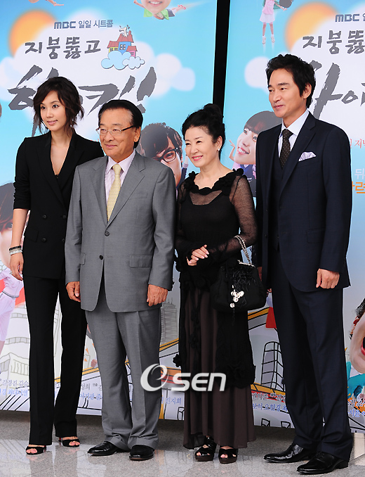 MBC 새 일일 시트콤 '지붕뚫고 하이킥'의 제작보고회가 26일 MBC 일산 드림센터에서 주연배우 이순재 김자옥 오현경 정보석 신세경 등이 참석한 가운데 열렸다. '지붕뚫고 하이킥'은 서울로 갓 상경한 두 자매가 성북동 순재네 집 식모로 입주하게 되면서 이 집 식구들과 벌이는 유쾌한 코미디를 담은 성장 시트콤 드라마다. 오현경 이순재 김자옥 정보석이 밝게 웃으며 포토타임을 갖고 있다./일산=손용호 기자spjj@osen.co.kr