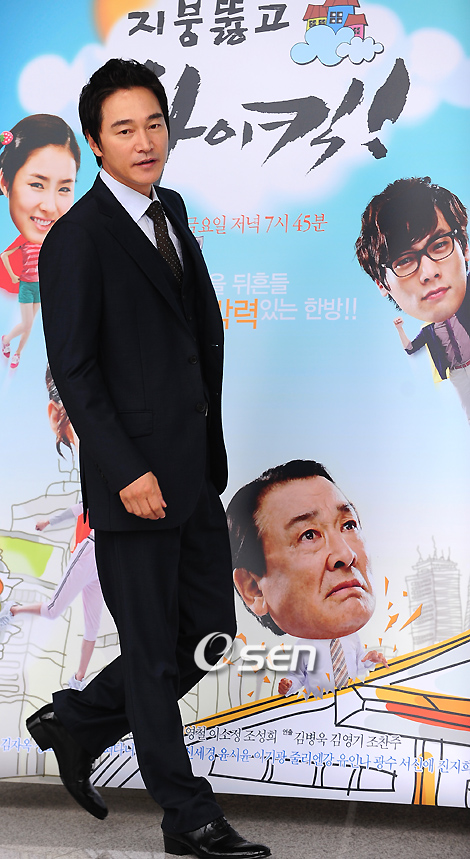 MBC 새 일일 시트콤 '지붕뚫고 하이킥'의 제작보고회가 26일 MBC 일산 드림센터에서 주연배우 이순재 김자옥 오현경 정보석 신세경 등이 참석한 가운데 열렸다. '지붕뚫고 하이킥'은 서울로 갓 상경한 두 자매가 성북동 순재네 집 식모로 입주하게 되면서 이 집 식구들과 벌이는 유쾌한 코미디를 담은 성장 시트콤 드라마다. 정보석이 포토타임을 갖고 있다./일산=손용호 기자spjj@osen.co.kr