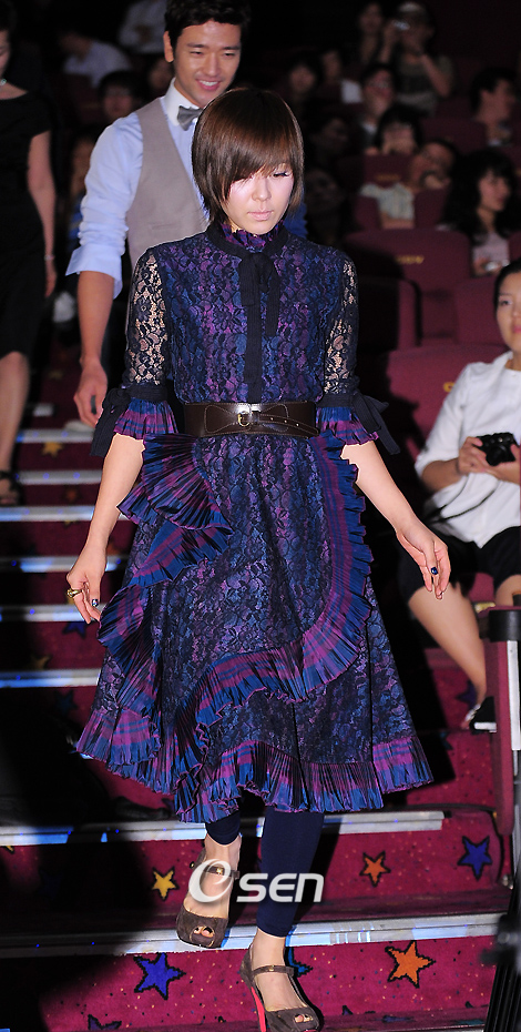 최강희 김영애 주연의 영화 '애자'(시리우스 픽쳐스 제작, 정기훈 각본 감독, 내달 10일 개봉 예정)의 언론시사회가 26일 오후 서울 용산CGV에서 열렸다. 이 영화는 다 큰 처녀의 파란만장한 성장 이야기를 다룬 영화로 방송국 작가 생활을 그만두고 소설가를 꿈꾸는 서른 살의 애자(최강희 분)가 죽음을 앞둔 엄마(김영애 분)와 사사건건 대립하면서 겪는 성장통을 그렸다. 최강희가 무대인사를 위해 계단을 내려오고 있다./민경훈기자 rumi@osen.co.kr