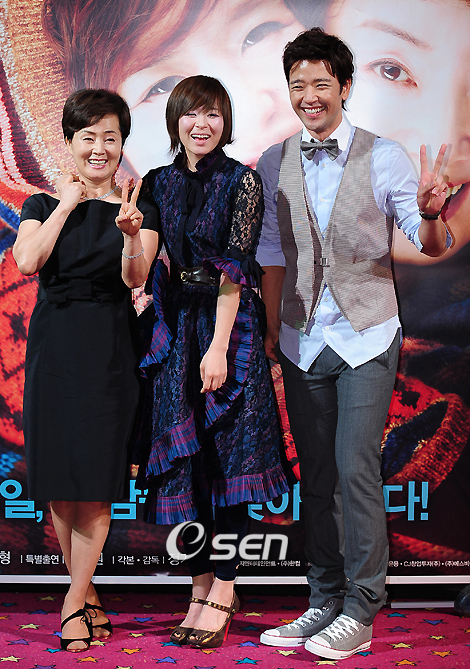 최강희 김영애 주연의 영화 '애자'(시리우스 픽쳐스 제작, 정기훈 각본 감독, 내달 10일 개봉 예정)의 언론시사회가 26일 오후 서울 용산CGV에서 열렸다. 이 영화는 다 큰 처녀의 파란만장한 성장 이야기를 다룬 영화로 방송국 작가 생활을 그만두고 소설가를 꿈꾸는 서른 살의 애자(최강희 분)가 죽음을 앞둔 엄마(김영애 분)와 사사건건 대립하면서 겪는 성장통을 그렸다. 김영애 최강희 배수빈이 기자회견을 마치고 포토타임을 갖고 있다./민경훈기자 rumi@osen.co.kr