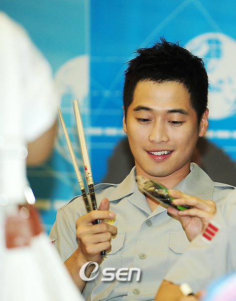 ITC2009 인천국제정보산업전시회 국군방송이 함께하는 홍보지원대 팬사인회 행사가 28일 오후 인천 연수구 송도동 컨벤시아 전시장 이벤트 홀에서 열렸다. 이 자리에는 연예병사 토니안, 양동근, 김재원, 재희, 온주완이 참석했다. 이들은 국방홍보원 홍보지원대의 연예병사들로 국군방송 FM의 위문열차 등에서 활약을 하고 있다. 사인회에서 김재원이 팬으로부터 선물을 받고 있다./연수(인천)=민경훈 기자 rumi@osen.co.kr