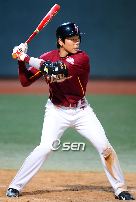 히어로즈가 극적으로 롯데의 3연승을 저지하며 4강 희망을 이어갔다. 히어로즈는 30일 사직구장에서 열린 2009 CJ 마구마구 프로야구 롯데와의 원정경기에서 9회초 터진 강정호의 결승타로 짜릿한 4-3 역전승을 거뒀다. 강정호는 연속 타점을 6경기로 늘렸다. 강정호는 3-3으로 팽팽하던 9회 2사 1, 3루 볼카운트 1-1에서 롯데 선발 송승준의 포크볼을 툭 밀어쳐 우익선상 안쪽에 떨어지는 행운의 적시타를 기록했다. 이 안타로 3루주자 이택근이 홈을 밟아 승부를 결정지었다. 히어로즈는 이택근이 볼넷, 클락이 롯데 포수 강민호의 타격방해에 의해 출루하며 무사 1, 2루 찬스를 잡았다. 그러나 송지만의 번트 플라이 아웃, 브룸바의 1루수 인필드플라이로 득점 찬스가 무산될 위기에 처했다. 그러나 이택근이 3루 도루로 송승준을 흔들었고 강정호는 앞서 첫 타석과 두 번째 타석에서 삼진으로 물러났을 때 당한 포크볼을 적시타로 연결했다. 이후 히어로즈는 송신영을 마무리로 올려 경기를 끝냈다. 송신영은 시즌 2세이브(2승 1패)를 챙겼다. 이로써 이번 롯데와의 사직 3연전 2연패 후 첫 승을 거둔 히어로즈는 시즌 54승(57패 1무)으로 4할8푼2리의 시즌 승률을 기록했다. 6위에 머물렀지만 이날 SK에 패한 5위 삼성(.487)에 5리차로 추격했고 롯데의 승률을 4할9푼6리(60승 61패)로 끌어내렸다. 롯데는 3연승이 좌절되면서 4위를 굳힐 수 있었던 절호의 기회를 놓치고 말았다. 히어로즈 선발 황두성은 8이닝 동안 6피안타(2피홈런) 3탈삼진으로 3실점, 시즌 6승(2패, 9세이브)에 성공했다. 지난 1일 목동 LG전 이후 5연승 행진이다. 또 현대 유니폼을 입었던 2006년 7월 5일 수원경기 이후 롯데전 5연승이다. 연승으로 4위 굳히기에 나선 롯데가 홈런포로 흐름을 먼저 잡았다. 2회 선두타자로 나온 이대호가 선제 솔로아치를 그렸다. 이대호는 볼카운트 1-0에서 히어로즈 선발 황두성의 141km짜리 직구를 걷어올려 중간 담장을 훌쩍 넘겼다. 시즌 26호 홈런. 그러자 히어로즈가 3회 공격에서 분위기를 뒤집었다. 2사 후 김일경이 우중간 2루타로 찬스를 만들자 황재균이 오른 담장 상단 맞히는 2루타로 동점을 만들었다. 이어 이숭용의 적시타가 나와 2-1로 역전했다. 롯데는 4회 가르시아의 역전 투런아치로 다시 앞섰다. 가르시아는 1사 후 이대호가 중간 담장 맞히는 2루타로 출루하자 볼카운트 0-1에서 황두성의 142km짜리 직구를 통타, 담장을 훌쩍 넘겼다. 시즌 24호 홈런이다. 이후 송승준의 호투 속에 롯데의 리드가 이어졌다. 하지만 3루수 이대호의 실책성 수비 하나가 승부를 원점으로 돌리고 말았다. 7회 송지만의 3루쪽 기습번트 성공으로 1사 1루 찬스를 연 히어로즈는 강정호의 적시 2루타로 동점에 성공했다. 하지만 강정호의 3루 땅볼 타구 바운드를 제대로 읽어내지 못한 이대호가 타구를 뒤로 빠뜨렸고 2루타로 기록됐다. 롯데 선발 송승준은 완투에 가까운 피칭을 하고도 승리 대신 패전을 떠안았다. 8⅔이닝 8피안타 2볼넷 5탈삼진으로 4실점(3자책), 시즌 7패(12승)를 기록했다. 13승으로 KIA 구톰슨과 다승 공동 선두를 이룰 수 있었던 기회를 아쉽게 접어야 했다. letmeout@osen.co.kr 강정호.