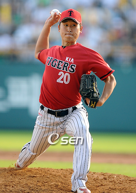 "1승 더 채우고 새로운 목표를 잡겠다". 동료들은 그의 분투를 바라만 보고 있지 않았다. 어느새 한국 최고 우완 중 한 명으로 발돋움한 윤석민(23. KIA 타이거즈)이 극적으로 터진 타선의 위력에 힘입어 시즌 9승(3패, 30일 현재) 째를 올리는 동시에 규정 이닝을 채우며(116⅓이닝) 평균 자책점 1위(2.79) 자리에 올랐다. 경기 후 윤석민은 "초반 경기가 안 풀려서 힘든 경기를 했다. 하지만 최근 타선이 활발한 공격을 보여주고 있어 잘 막아내면 좋은 결과가 잇을 것으로 예상했다"라며 기다림이 헛되지 않았음을 밝혔다. 뒤이어 그는 평균 자책점 1위 자리에 오른 데 대해 "2년 연속 평균 자책점 1위 타이틀을 가져갈 수 있도록 노력하겠다"라며 "시즌 목표 10승에 1승이 남았다. 1승 더 채우고 새로운 목표를 잡겠다"라는 말로 한 발 더 나아가겠다는 다짐을 보여주었다. 화끈한 역전승을 거둔 조범현 KIA 감독은 "윤석민이 초반 실점에도 불구, 상대 타선을 잘 막았고 8회 타선이 집중력을 잘 발휘했다. 이종범(39)의 희생 번트 성공이 승리의 밑거름이었다"라며 베테랑의 노력에 특별히 더 큰 점수를 주었다. 반면 김경문 두산 감독은 "많은 안타를 치지는 못했지만 집중력을 통해 좋은 수비를 보여주는 등 잘 싸워줬다"라며 선수들의 노력에 더 점수를 주었다. farinelli@osen.co.kr '2009 CJ 마구마구 프로야구' 두산 베어스와 KIA 타이거즈의 경기가 30일 오후 잠실야구장에서 벌어졌다. 2회초 KIA 선발투수 윤석민이 힘차게 볼을 던지고 있다./잠실=윤민호 기자ymh@osen.co.kr