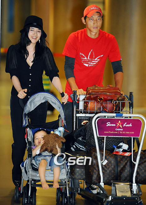 코 부상에도 불구하고 출전의지를 불태우는 김남일(빗셀 고베)이 상암월드컵경기장에서 열리는 호주와의 국가대표팀 평가전(5일)을 위해 31일 오후 인천국제공항을 통해 입국했다. 해외파 선수들은 1일 파주 국가대표트레이닝센터(NFC)에 소집돼 컨디션을 조절하고, 3일 K-리거들이 대표팀에 합류하면 본격적인 호주전 담금질에 들어갈 예정이다. 김남일이 부인 김보민-아들 김서우와 공항을 나서고 있다./인천공항=윤민호 기자ymh@osen.co.kr