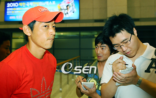 코 부상에도 불구하고 출전의지를 불태우는 김남일(빗셀 고베)이 상암월드컵경기장에서 열리는 호주와의 국가대표팀 평가전(5일)을 위해 31일 오후 인천국제공항을 통해 입국했다. 해외파 선수들은 1일 파주 국가대표트레이닝센터(NFC)에 소집돼 컨디션을 조절하고, 3일 K-리거들이 대표팀에 합류하면 본격적인 호주전 담금질에 들어갈 예정이다. 입국한 김남일이 인터뷰를 갖고 있다./인천공항=윤민호 기자ymh@osen.co.kr