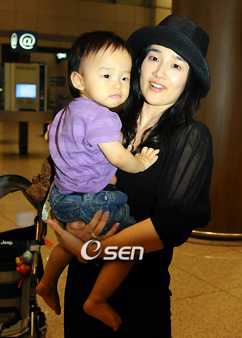 코 부상에도 불구하고 출전의지를 불태우는 김남일(빗셀 고베)이 상암월드컵경기장에서 열리는 호주와의 국가대표팀 평가전(5일)을 위해 31일 오후 인천국제공항을 통해 입국했다. 해외파 선수들은 1일 파주 국가대표트레이닝센터(NFC)에 소집돼 컨디션을 조절하고, 3일 K-리거들이 대표팀에 합류하면 본격적인 호주전 담금질에 들어갈 예정이다. 김남일의 부인 김보민이 아들 김서우와 미소 짓고 있다./인천공항=윤민호 기자ymh@osen.co.kr