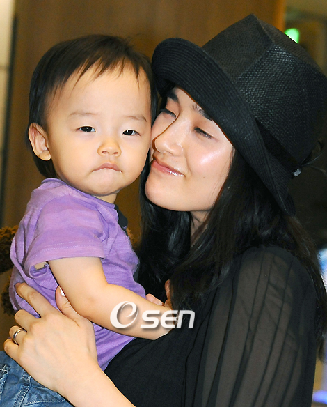 코 부상에도 불구하고 출전의지를 불태우는 김남일(빗셀 고베)이 상암월드컵경기장에서 열리는 호주와의 국가대표팀 평가전(5일)을 위해 31일 오후 인천국제공항을 통해 입국했다. 해외파 선수들은 1일 파주 국가대표트레이닝센터(NFC)에 소집돼 컨디션을 조절하고, 3일 K-리거들이 대표팀에 합류하면 본격적인 호주전 담금질에 들어갈 예정이다. 김남일의 부인 김보민이 아들 김서우와 다정한 시간을 보내고 있다./인천공항=윤민호 기자ymh@osen.co.kr