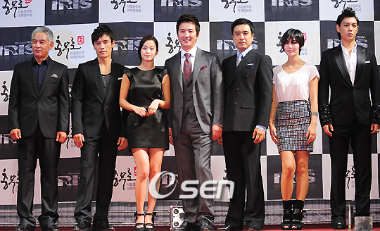 이병헌 김태희 정준호 김승우 김소연 최승현(T.O.P) 등 국내 정상급 스타들이 출연해 큰 화제를 모으고 있는 KBS 새 드라마 '아이리스(김현준 극본, 김규태 양윤호 연출)'의 쇼케이스가 제3회 서울충무로국제영화제 특별이벤트로 31일 저녁 서울 광화문 청계광장에서 열렸다. 첩보원들의 액션과 배신, 로맨스를 그린 이 드라마는 200억여 원에 달하는 제작비와 아시아와 유럽을 넘나드는 해외 로케이션 등으로 화려한 볼거리를 예고하고 있으며 내달 14일 첫 방송 예정이다. 김영철 이병헌 김태희 정준호 김승우 김소연 최승현(T.O.P)이 무대 위에서 포토타임을 갖고 있다./민경훈 기자 rumi@osen.co.kr