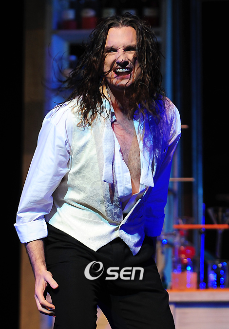 소설과 영화로 우리에게 낯익은 프랭크 와일드혼 원작의 '지킬앤 하이드'의 쇼케이스가 주연배우 브래드 리틀(지킬앤하이드), 루시 몬더(엠마) 등 출연진이 참석한 가운데 1일 세종문화회관에서 열렸다. 세계 정상급 뮤지컬 배우 브래드 리틀이 주인공으로 나와 기존 라이선스 공연에서 볼 수 없었던 새로운 버전의 공연을 취재진에게 하이라이트로 보여줬다. 벨린다 월스톤(루시)은 몸이 좋지 않아 참석하지 못했다. 지킬앤 하이드 역의 브래드 리틀이 하이드로 분한 모습을 보여주고 있다./손용호 기자spjj@osen.co.kr