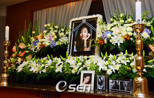 톱스타 장진영이 1일 오후 서울 강남성모병원에서 37세 젊은 나이에 안타깝게 세상을 떠났다. 장진영은 지난해 9월 위암 검진을 받고 투병생활에 들어갔으나 최근 암세포가 몸 전체로 퍼져 의식을 잃을 정도로 상태가 나빠졌다. 장진영의 빈소는 이날 저녁 서울 아산병원에 차려져 뒤늦게 소식을 듣고 조문을 온 동료 연예인들과 팬들의 행렬이 이어졌다. 故 장진영의 빈소가 공개되고 있다. /민경훈 기자 rumi@osen.co.kr