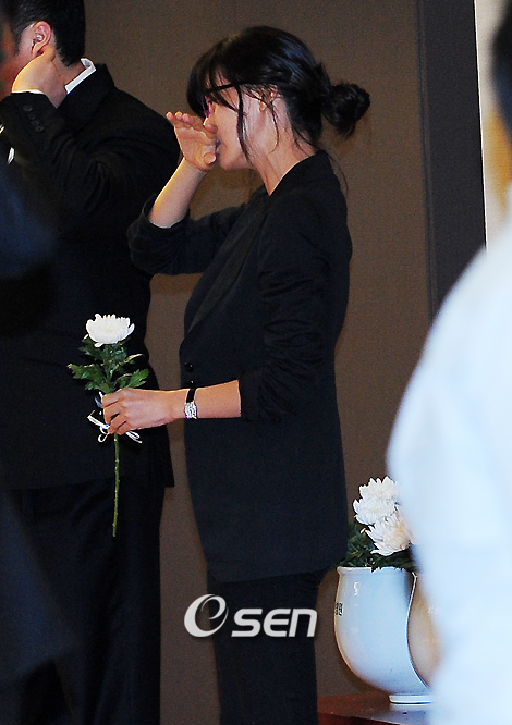 톱스타 장진영이 1일 오후 서울 강남성모병원에서 37세 젊은 나이에 안타깝게 세상을 떠났다. 장진영은 지난해 9월 위암 검진을 받고 투병생활에 들어갔으나 최근 암세포가 몸 전체로 퍼져 의식을 잃을 정도로 상태가 나빠졌다. 장진영의 빈소는 이날 저녁 서울 아산병원에 차려져 뒤늦게 소식을 듣고 조문을 온 동료 연예인들과 팬들의 행렬이 이어졌다. 유선이 빈소에서 눈물을 흘리고 있다./민경훈 기자 rumi@osen.co.kr