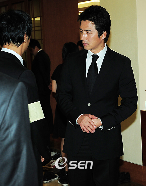 톱스타 장진영이 1일 오후 서울 강남성모병원에서 37세 젊은 나이에 안타깝게 세상을 떠났다. 장진영은 지난해 9월 위암 검진을 받고 투병생활에 들어갔으나 최근 암세포가 몸 전체로 퍼져 의식을 잃을 정도로 상태가 나빠졌다. 장진영의 빈소는 이날 저녁 서울 아산병원에 차려져 뒤늦게 소식을 듣고 조문을 온 동료 연예인들과 팬들의 행렬이 이어졌다. 정준호가 빈소를 나서며 유가족과 얘기를 나누고 있다./민경훈 기자 rumi@osen.co.kr