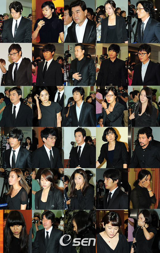 톱스타 장진영이 1일 오후 서울 강남성모병원에서 37세 젊은 나이에 안타깝게 세상을 떠났다. 장진영은 지난해 9월 위암 검진을 받고 투병생활에 들어갔으나 최근 암세포가 몸 전체로 퍼져 의식을 잃을 정도로 상태가 나빠졌다. 장진영의 빈소는 이날 저녁 서울 아산병원에 차려져 뒤늦게 소식을 듣고 조문을 온 동료 연예인들과 팬들의 행렬이 이어졌다. 이 날 30여명의 스타들이 빈소를 찾아 애도를 했다. (왼쪽 위부터 순서대로-송일국, 전도연, 이덕화, 김유미, 김주혁, 이병헌, 안재욱, 박철, 차태현, 김민종, 김석훈, 송혜교, 박해일, 유선, 김정은, 한재석, 이범수, 정준호, 박경림, 황정민, 김아중, 한지민, 한지혜, 진구, 엄정화, 공효진, 오달수, 임수정, 이승연, 엄지원) /민경훈 기자 rumi@osen.co.kr
