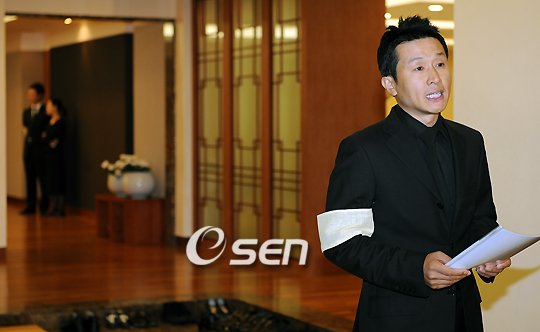 톱스타 장진영이 1일 오후 서울 강남성모병원에서 37세 젊은 나이에 안타깝게 세상을 떠났다. 장진영은 지난해 9월 위암 검진을 받고 투병생활에 들어갔으나 최근 암세포가 몸 전체로 퍼져 의식을 잃을 정도로 상태가 나빠졌다. 장진영의 빈소는 서울 아산병원에 차려져 뒤늦게 소식을 듣고 조문을 온 동료 연예인들과 팬들의 행렬이 이어졌다. 예당엔터테이먼트 김안철 차장이 故장진영의 혼인신고 대한 입장 표명을 하고 있다./윤민호 기자ymh@osen.co.kr