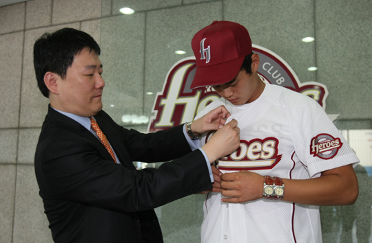 히어로즈는 2일 오후 목동 구단사무실에서 2010년 신인 1차 지명 선수 김정훈(18, 광주진흥고 투수)과 계약금 1억8000만원, 연봉 2400만원에 입단 계약을 체결했다. 김정훈은 "한국 프로야구를 대표했던 김시진 감독님과 정민태 코치님으로부터 지도 받을 생각을 하니 벌써부터 가슴이 설렌다"며 "자신 있는 투구와 성실한 플레이로 내년시즌 프로에서 활약하게 될 신인들 중 가장 돋보이는 플레이를 펼치고 싶다"고 입단 소감을 밝혔다. 작년 메이저리그 구단 스카우트의 관심을 받았던 김정훈은 좋은 신체 조건(187cm 88kg)을 바탕으로 140km 중반대의 힘 있는 직구를 주무기로 가지고 있다. 올해 초 허리 부상으로 많은 이닝을 소화하지는 못했으나, 현재 부상 회복 후 팀 합류를 기다리고 있으며, 히어로즈의 차세대 선발감으로 기대하고 있다. 김정훈은 올해 각종 전국대회 8경기에 등판해 41이닝 동안 3승 3패 54탈삼진 13사사구 7자책 방어율 1.54를 기록했다. what@osen.co.kr 히어로즈 제공.