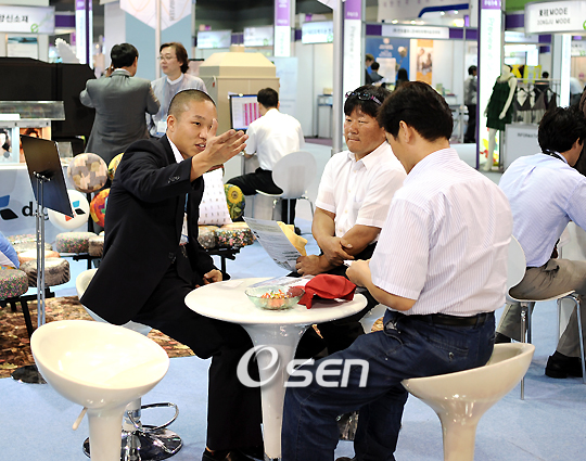 우리나라의 대표적인 섬유소재 전시회인 ‘프리뷰 인 서울 2009’(대한민국섬유교역전)가 2일 오전 개막식을 시작으로 서울 삼성동 코엑스 1층 인도양홀에서 3일간의 행사에 들어갔다. 서울시와 한국섬유산업연합회가 주최하고 지식경제부 대구광역시 KOTRA가 후원하는 이번 행사에는 214개 섬유업체가 418개 부스를 구성해 한국 섬유산업의 오늘과 내일을 점칠 수 있게 했다. 디지털 섬유 프린팅 솔루션 제공 전문업체인 ㈜디젠도 대한민국 섬유교역전에 야심차게 참여 했는데 산업용 디지털 프린터 분야에서 독보적인 기술을 보유하고 있는 디젠은 이번 전시회를 ‘예술적 디자인과 기술적 표현’의 한계를 극복하는 전기로 삼고자 하고 있다. 디젠이 생산하고 있는 디지털 날염 기술은 예술적 범주의 다양한 디자인 작품들을 질적 손실 없이 대량생산이 가능하게 해 핸드메이드 예술 작품의 산업화 과정을 앞당길 수 있을 것으로 기대되고 있다. 디젠 임직원들이 인도양홀 내 부스에서 바이어들을 상대하고 있다. /강희수 기자 100c@osen.co.kr