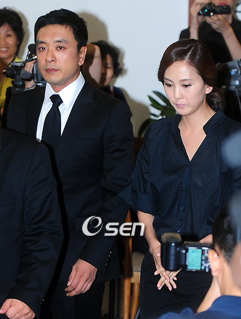 톱스타 장진영이 1일 오후 서울 강남성모병원에서 만 38세 젊은 나이에 안타깝게 세상을 떠났다. 장진영은 지난해 9월 위암 검진을 받고 투병생활에 들어갔으나 최근 암세포가 몸 전체로 퍼져 의식을 잃을 정도로 상태가 나빠졌다. 장진영의 빈소는 서울 아산병원에 차려져 뒤늦게 소식을 듣고 조문을 온 동료 연예인들과 팬들의 행렬이 이어졌다. 김승우-김남주 부부가 2일 저녁 슬픈 표정으로 빈소를 방문하고 있다./윤민호 기자ymh@osen.co.kr