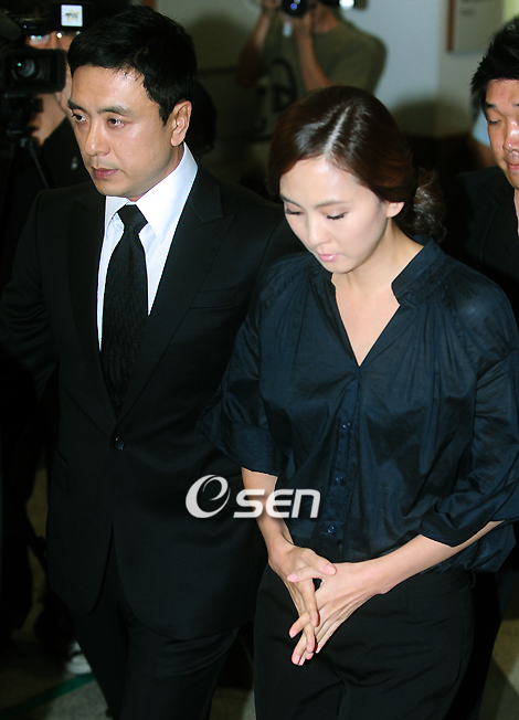 톱스타 장진영이 1일 오후 서울 강남성모병원에서 만 38세 젊은 나이에 안타깝게 세상을 떠났다. 장진영은 지난해 9월 위암 검진을 받고 투병생활에 들어갔으나 최근 암세포가 몸 전체로 퍼져 의식을 잃을 정도로 상태가 나빠졌다. 장진영의 빈소는 서울 아산병원에 차려져 뒤늦게 소식을 듣고 조문을 온 동료 연예인들과 팬들의 행렬이 이어졌다. 김승우-김남주 부부가 2일 저녁 슬픈 표정으로 빈소를 방문하고 있다./윤민호 기자ymh@osen.co.kr