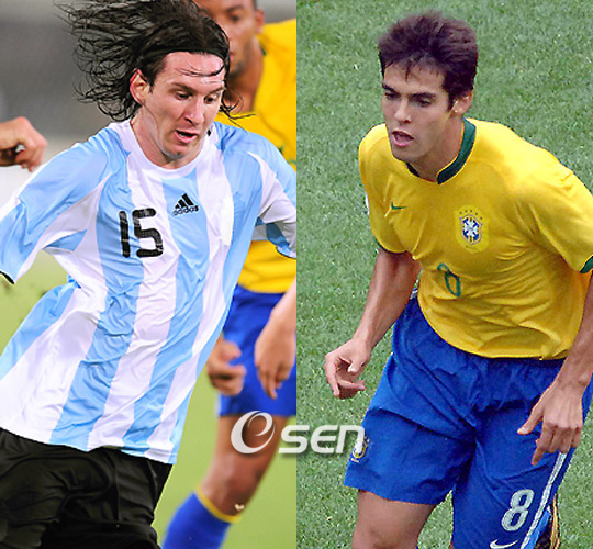 '마법사' 리오넬 메시(22, 아르헨티나)와 '하얀 펠레' 카카(27, 브라질)가 숙명의 맞대결을 펼친다. 아르헨티나(세계랭킹 8위)는 오는 6일(이하 한국시간) 오전 9시 30분 로사리오서 열릴 2010남아공월드컵 남미예선 15차전 홈경기서 '영원한 라이벌' 브라질(세계랭킹 1위)과 조우한다. 아르헨티나(승점22, 6승4무4패)는 본선 직행의 마지노선인 4위에 턱걸이하고 있어 1위를 달리고 있는 브라질(승점27, 7승6무1패)과 대결서 승리가 절실하다. 브라질은 현재 단 4경기만 남겨 놓은 상황서 5위 에콰도르에 승점 2점차로 쫓기고 있는 절박한 상황. 그렇기 때문에 월드컵 10회 연속이자 통산 15번째 본선행을 위해 '마법사' 메시의 발 끝에 기대를 걸고 있다. 메시(A매치 38경기 12골)는 이번 예선서 4골을 터트리고 있으나 최근 3경기서 침묵하고 있어 지난 시즌 소속팀인 FC 바르셀로나서 38골 18도움(51경기)을 기록했던 위용을 되찾을 필요가 있다. 메시 본인 역시 리그 개막전인 스포르팅 히혼전 결장까지 감수하며 대표팀에 조기 합류해 "브라질은 위대한 선수들을 보유하고 있지만 우리 역시 마찬가지다. 오히려 우리가 쉽게 이길 수도 있다"며 동료들을 독려하고 있다. 반면 브라질도 4위 아르헨티나와 승점이 5점차에 불과해 19번째 본선행을 위해 아르헨티나전에 총력을 다하고 있다. 역시 지난 시즌 전 소속팀인 AC 밀란서 16골(36경기)을 뽑아냈고 이번 예선서 5골을 터트리고 있는 '에이스' 카카(A매치 70경기 26골)에게 기대를 걸고 있다. 카카(현 레알 마드리드)는 이번 경기를 앞두고 "아르헨티나의 메시, 세르히오 아게로, 카를로스 테베스 같은 젊은 선수들은 한순간에 승부를 뒤집을 수 있는 능력을 갖추고 있어 조심해야 한다"며 경계심을 늦추지 않고 있다. 통산 93번 맞대결을 펼쳐 34승 23무 36패(148골 146실점)로 백중세를 이어가고 있는 아르헨티나와 브라질의 슈퍼매치의 결과에 세간의 관심이 집중되고 있다. 지난해 6월 19일 벨로 호리존테서 열린 브라질 홈 경기서는 양 팀이 0-0으로 비긴 바 있다. parkrin@osen.co.kr
