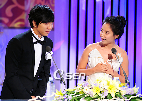 한국방송협회가 제 46회 방송의 날을 맞아 3일 오후 서울 여의도 KBS 홀에서 제36회 한국방송대상 시상식을 개최하였다. 수상자로는 ‘누들로드’를 비롯해 TV 연출 부문 MBC ‘무한도전’ 김태호 PD, 탤런트 부문 ‘베토벤 바이러스’의 김명민, 신인 탤런트 부문 ‘사랑해 울지마’ 이상윤이 수상한다. 또 가수 부문은 SG 워너비가, 신인 가수 부문은 장기하와 얼굴들이 받는다. 이 날 행사에는 가수 소녀시대, MC몽, SG워너비의 축하공연 등 다채로운 행사들이 펼쳐진다.또 배우 최불암, 홍수아, 가수 이승기, 윤아, 은지원, 야구해설가 허구연, 코미디언 강유미,안영미가 시상자로 출연할 계획이다. 시상자로 나선 이승기와 송지효가 인사말을 전하고 있다./윤민호 기자ymh@osen.co.kr