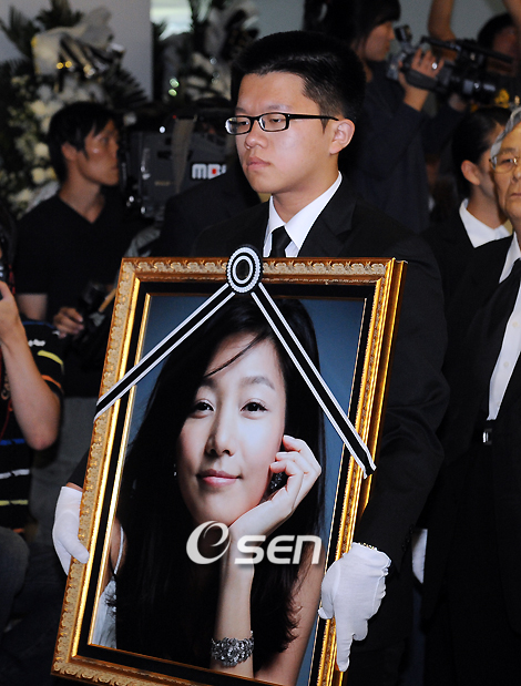 지난 1일 오후 37세의 꽃다운 나이에 세상과 이별한 톱스타 장진영의 발인식이 4일 오전 서울 아산병원에서 엄숙하게 치러졌다. 장진영은 지난해 9월 위암 검진을 받고 투병생활에 들어갔으나 최근 암세포가 몸 전체로 퍼져 의식을 잃을 정도로 상태가 나빠졌다. 그 동안 장진영의 빈소에는 동료 연예인들과 팬들의 조문 행렬이 이어졌다. 고인은 4일 오전 10시 성남 제사장에서 화장한 후 장지인 경기 분당 스카이캐슬 추모공원에 안치될 예정이다. 故장진영의 영정 사진이 조카의 손에 들려 운구차량으로 향하고 있다./윤민호 기자ymh@osen.co.kr