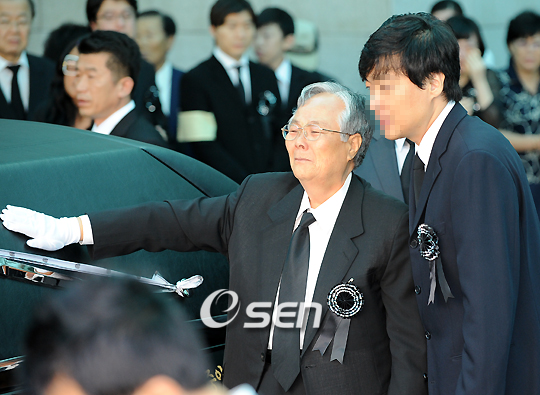 지난 1일 오후 37세의 꽃다운 나이에 세상과 이별한 톱스타 장진영의 발인식이 4일 오전 서울 아산병원에서 엄숙하게 치러졌다. 장진영은 지난해 9월 위암 검진을 받고 투병생활에 들어갔으나 최근 암세포가 몸 전체로 퍼져 의식을 잃을 정도로 상태가 나빠졌다. 그 동안 장진영의 빈소에는 동료 연예인들과 팬들의 조문 행렬이 이어졌다. 고인은 4일 오전 10시 성남 제사장에서 화장한 후 장지인 경기 분당 스카이캐슬 추모공원에 안치될 예정이다. 故장진영의 남편이 장인과 함께 운구차량을 따르고 있다./윤민호 기자ymh@osen.co.kr