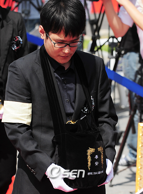 지난 1일 오후 37세의 꽃다운 나이에 세상과 이별한 톱스타 장진영의 장례식이 4일 오후 경기도 광주시 오포읍 신현리 '분당 스카이캐슬 추모공원'에서 엄숙하게 치러졌다. 장진영은 지난해 9월 위암 검진을 받고 투병생활에 들어갔으나 최근 암세포가 몸 전체로 퍼져 의식을 잃을 정도로 상태가 나빠졌다. 그 동안 장진영의 빈소에는 동료 연예인들과 팬들의 조문 행렬이 이어졌다. 장진영의 유골함이 운구되고 있다./광주(경기)=민경훈 기자 rumi@osen.co.kr