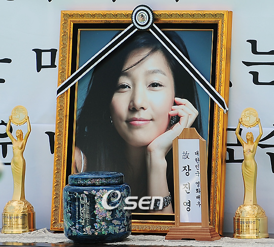 지난 1일 오후 37세의 꽃다운 나이에 세상과 이별한 톱스타 장진영의 장례식이 4일 오후 경기도 광주시 오포읍 신현리 '분당 스카이캐슬 추모공원'에서 엄숙하게 치러졌다. 장진영은 지난해 9월 위암 검진을 받고 투병생활에 들어갔으나 최근 암세포가 몸 전체로 퍼져 의식을 잃을 정도로 상태가 나빠졌다. 그 동안 장진영의 빈소에는 동료 연예인들과 팬들의 조문 행렬이 이어졌다. 장진영의 추모식이 진행되고 있다./광주(경기)=민경훈 기자 rumi@osen.co.kr
