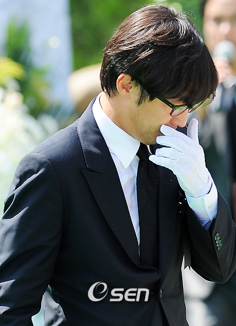 지난 1일 오후 37세의 꽃다운 나이에 세상과 이별한 톱스타 장진영의 장례식이 4일 오후 경기도 광주시 오포읍 신현리 '분당 스카이캐슬 추모공원'에서 엄숙하게 치러졌다. 장진영은 지난해 9월 위암 검진을 받고 투병생활에 들어갔으나 최근 암세포가 몸 전체로 퍼져 의식을 잃을 정도로 상태가 나빠졌다. 그 동안 장진영의 빈소에는 동료 연예인들과 팬들의 조문 행렬이 이어졌다. 추모식 중 그녀에게 보내는 마지막 편지를 읽은 안재욱이 눈물을 흘리며 퇴장하고 있다./광주(경기)=민경훈 기자 rumi@osen.co.kr