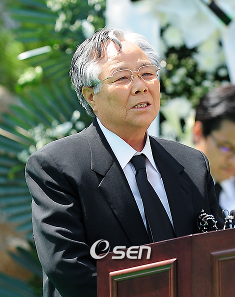 지난 1일 오후 37세의 꽃다운 나이에 세상과 이별한 톱스타 장진영의 장례식이 4일 오후 경기도 광주시 오포읍 신현리 '분당 스카이캐슬 추모공원'에서 엄숙하게 치러졌다. 장진영은 지난해 9월 위암 검진을 받고 투병생활에 들어갔으나 최근 암세포가 몸 전체로 퍼져 의식을 잃을 정도로 상태가 나빠졌다. 그 동안 장진영의 빈소에는 동료 연예인들과 팬들의 조문 행렬이 이어졌다. 추모식 중 장진영의 아버지가 추도사를 하고 있다../광주(경기)=민경훈 기자 rumi@osen.co.kr