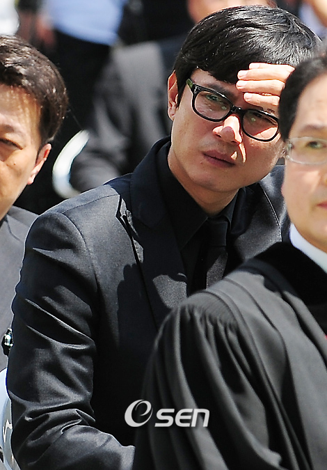 지난 1일 오후 37세의 꽃다운 나이에 세상과 이별한 톱스타 장진영의 장례식이 4일 오후 경기도 광주시 오포읍 신현리 '분당 스카이캐슬 추모공원'에서 엄숙하게 치러졌다. 장진영은 지난해 9월 위암 검진을 받고 투병생활에 들어갔으나 최근 암세포가 몸 전체로 퍼져 의식을 잃을 정도로 상태가 나빠졌다. 그 동안 장진영의 빈소에는 동료 연예인들과 팬들의 조문 행렬이 이어졌다. 김민종이 고인의 추모영상을 지켜보고 있다./광주(경기)=민경훈 기자 rumi@osen.co.kr