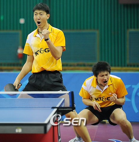 KT&G가 '맏형' 오상은의 맹활약 속에 개막전 승리를 챙겼다. 상무도 삼성생명을 꺾는 이변을 일으켰다. KT&G는 4일 낮 2시 서울 장충체육관에서 열린 2009 KRA컵 탁구 슈퍼리그 1라운드 개막전에서 오상은과 김정훈의 맹활약 속에 세트 스코어 3-2의 짜릿한 승리를 신고했다. 이로써 '디펜딩 챔피언' KT&G는 총 상금 1억 원이 걸린 슈퍼리그(남녀 우승 3500만 원, 준우승 1500만 원)이 걸린 슈퍼리그 2연패에 강한 시동을 걸게 됐다. 세미프로를 표방하는 이 대회는 남자는 5개 팀, 여자는 4개 팀이 1, 2라운드를 거쳐 1, 2위에 오른 두 팀이 챔피언결정전을 치러 우승을 결정한다. KT&G는 '맏형' 오상은을 앞세워 기선을 제압했다. 오상은은 서영균을 상대로 1, 2세트를 손쉽게 챙긴 뒤 3세트를 내줬지만 마지막 4세트에서 접전 끝에 12-10으로 승리하면서 기분 좋은 시작을 알렸다. 그러나 대우증권의 반격도 매서웠다. 최현진이 김경민을 3-0으로 물리치면서 승부를 원점으로 되돌린 것. 비록 KT&G의 필승카드인 오상은과 김정훈에게 복식을 내주면서 1-2로 뒤졌지만 바로 이정재가 강동훈을 3-1로 제압, 팽팽한 맞대결을 이어갔다. 하지만 승리는 김정훈이 버틴 KT&G의 몫이었다. 김정훈은 유창재를 상대로 3세트를 내리 따내면서 KT&G에 승리를 안겼다. 상무도 삼성생명을 상대로 3-0 대승을 거뒀다. 상무는 조언래가 주세혁을 상대로 3-1로 승리하는 파란을 일으킨 뒤 김태훈 역시 이상수를 3-1로 제압하면서 승기를 잡았다. 삼성생명은 유승민과 윤재영을 복식으로 내세워 반전을 노렸지만 역시 조언래과 김태훈에게 1-3으로 패하면서 2년 연속 개막전 패배를 기록하게 됐다. stylelomo@osen.co.kr