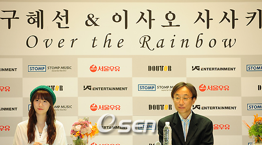 배우이자 만능 엔터테이너인 구혜선 4일 오후 서울 방이동 올림픽공원 내 우리금융아트홀에서 일본 음악계의 거장 이사오 사사키와 함께 개최하는 음악회 '오버 더 레인보우'의 기자회견을 가졌다. 구혜선은 오는 5일 오후 6시에 이 곳에서 '오버 더 레인보우'(Over the rainbow)라는 주제로 작은 음악회를 개최한다. 이 음악회에서 구혜선은 자신의 첫 장편영화 연출작 삽입곡들을 미리 소개할 계획이다. 구혜선의 소품집 '숨'은 9월3일 음원사이트를 통해 첫 공개됐다. 이번 소품집엔 연주곡을 중심으로 구혜선이 작곡한 총 8곡이 수록됐으며 타이틀곡인 '골목을 돌면'은 같은 소속사 가수 거미가 보컬로 나섰다. 이 곡을 제외한 7곡은 모두 연주곡이다. 구혜선과 이사오 사사키가 기자회견에 참여하고 있다./민경훈 기자 rumi@osen.co.kr