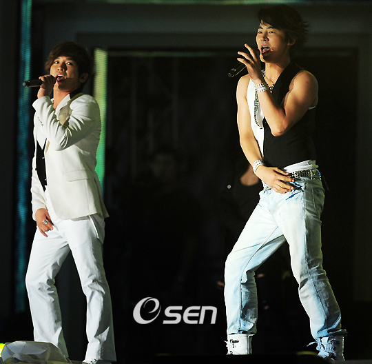 국내 최정상급 가수들이 총 출연하는 한류콘서트 '2009 인천 코리안뮤직웨이브'(Incheon Korean Music Wave)'가 5일 저녁 인천월드컵경기장에서 개최됐다. 티파니 오상진 유리의 진행으로 진행 된 이날 콘서트에는 슈퍼주니어, 소녀시대, 2PM, M(민우), 전진, FT아일랜드, 브라운 아이드 걸스, 이정현, 채연, 카라, 손담비, 백지영, 쥬얼리 등 한국을 대표하는 가수들이 출연해 화려한 공연을 펼쳤다. 한편 이 행사는 MBC 문화방송의 '쇼 음악중심' 특집방송으로 편성해 오는 12일 방송될 예정이다. M과 전진이'Perfect man'을 열창하며 화려한 안무를 선보이고 있다./인천=민경훈 기자 rumi@osen.co.kr
