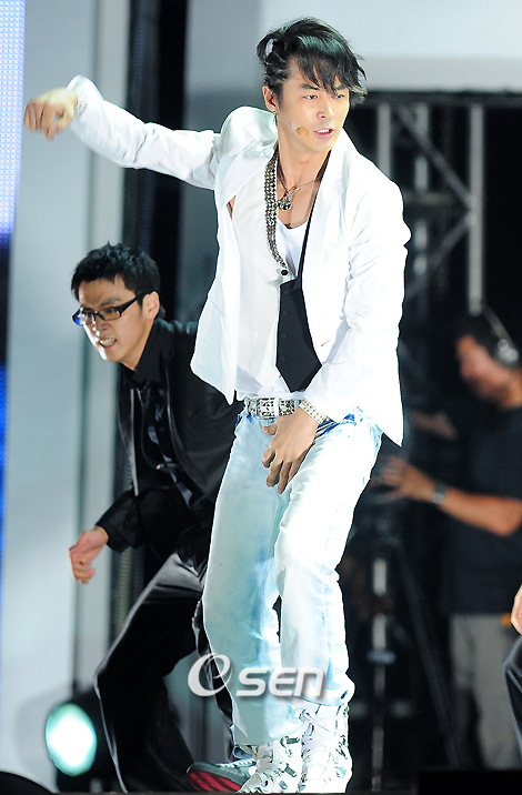 국내 최정상급 가수들이 총 출연하는 한류콘서트 '2009 인천 코리안뮤직웨이브'(Incheon Korean Music Wave)'가 5일 저녁 인천월드컵경기장에서 개최됐다. 티파니 오상진 유리의 진행으로 진행 된 이날 콘서트에는 슈퍼주니어, 소녀시대, 2PM, M(민우), 전진, FT아일랜드, 브라운 아이드 걸스, 이정현, 채연, 카라, 손담비, 백지영, 쥬얼리 등 한국을 대표하는 가수들이 출연해 화려한 공연을 펼쳤다. 한편 이 행사는 MBC 문화방송의 '쇼 음악중심' 특집방송으로 편성해 오는 12일 방송될 예정이다. 전진이 노래 'Hey Ya'를 열창하며 화려한 안무를 선보이고 있다./인천=민경훈 기자 rumi@osen.co.kr