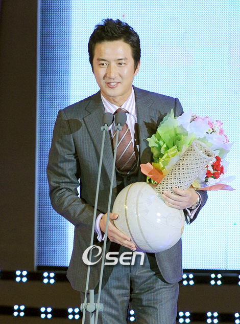 제17회 이천 춘사대상영화제 시상식이 5일 오후 경기도 이천시 설봉공원 도자기엑스포 야외특설 공연장에서 열렸다. 춘사대상영화제는 한국영화의 선각자인 춘사 나운규 감독의 역사적 의미를 기리고 영화 발전에 기여한 영화인 및 우수한 작품을 선정, 시상함으로써 영예를 부여하는 대한민국 대표 영화상 중 하나이다. 지난 9월 1일 개막해 5일까지 본선 진출작을 대상으로 일반인 시사회를 진행했고 이날 시상식을 끝으로 폐막된다. 정준호가 한류문화상을 수상 하고 있다./이천=윤민호 기자ymh@osen.co.kr