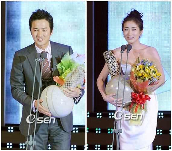 배우 최정원과 정준호가 제 17회 이천 춘사대상영화제 한류문화대상을 각각 수상했다. 이들은 5일 오후 7시부터 경기도 이천시 설봉공원 도자기엑스포 야외특설공연장에서 열린 제 17회 춘사영화제 시상식에서 한류문화대상 트로피를 거머쥐었다. 최정원은 중국에서 방영된 KBS 2TV '소문난 칠공주'의 성공으로 큰 인기를 얻고 있다. 중국에서 드라마와 광고 등의 러브콜이 쇄도하고 있다. 정준호는 올해 영화 '유감스러운 도시', '아이리스' 등을 선보였으며 현재 KBS 2TV '아이리스' 촬영 중이다. nyc@osen.co.kr