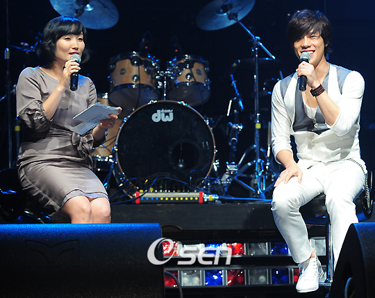 그룹 에이트(8eight)의 이현이 7일 오후 홍대 상상마당에서 사회자 박경림의 진행으로 자신의 첫 솔로앨범 '30분전'의 쇼케이스가 열렸다. 이 자리에서 이현의 환상적인 라이브 무대와 함께 배우 선우선과의 키스신으로 화제를 모으고 있는 노래 '30분 전'의 뮤직비디오 완편이 최초로 공개됐다. 노래 '30분 전'은 '총맞은 것처럼', '심장이 없어'에 이은 방시혁 작곡가의 이별 시리즈 3부작의 완결 곡으로 공개 전부터 큰 이슈가 되어왔다. 쇼케이스 중 박경림과 이현이 얘기를 나누고 있다./민경훈 기자 rumi@osen.co.kr