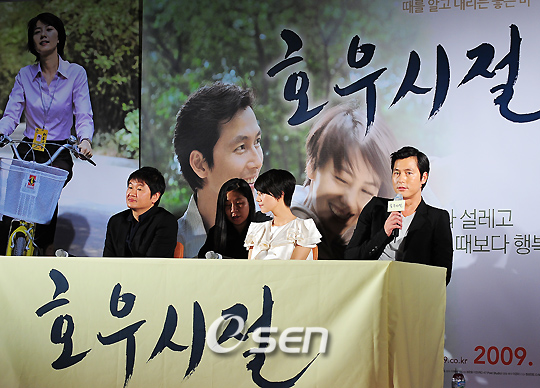 정우성과 고원원 주연, 허진호 감독의 영화 '호우시절'의 제작보고회가 8일 오전 서울 동대문 메가박스에서 열렸다. '호우시절'은 유학시절 친구였지만 사랑인 줄 모른 채 헤어졌던 두 사람이 몇 년 후 우연히 만나 다시 사랑에 빠지는 내용으로 내 달 8일 개봉할 예정이다. 정우성이 무대 위에서 기자회견을 하고 있다./민경훈 기자 rumi@osen.co.kr