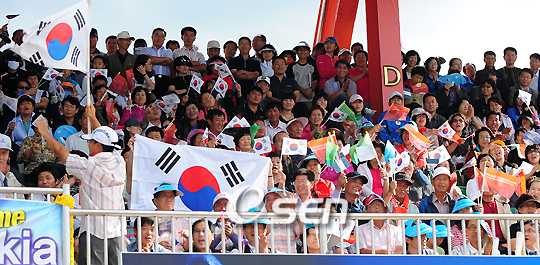 한국 여자 양궁 리커브 대표팀이 8일 오후 울산 문수국제양궁장에서 벌어진 세계선수권 단체전서 4연패에 성공했다. 주현정(현대모비스) 윤옥희(예천군청) 곽예지(대전체고)로 구성된 한국은 16강부터 4강까지 영국(214-201) 폴란드(220-207) 벨로루시(225-216)를 차례로 꺾은 데 이어 결승전서 일본을 꺾었다. 경기장을 찾은 울산시민들이 한국 선수들을 응원하고 있다./울산=윤민호 기자ymh@osen.co.kr