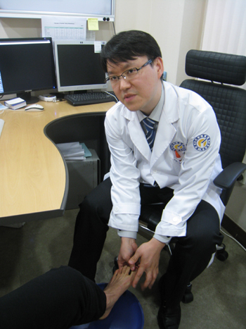 발가락 변형으로 신발신기와 보행의 어려움을 겪고 있는 김정자(43세)씨. 어릴적부터 엄마, 할머니까지 발가락의 변형을 봐왔기 때문에 특별히 고쳐야 하는 것으로 생각하지 않았다. 하지만 한번 시작된 발가락 변형은 점점 심해져 급기야 신발을 신는 것은 물론 걷는 것조차 어려웠다. 통증이 심해 찾은 병원에서 김씨는 무지외반증 진단을 받았다. 질병이라고 생각하지 못했는데 아이러니 하게도 수술을 앞두고 있다. 무지외반증은 엄지발가락이 새끼발가락으로 돌아가면서 엄지발가락이 돌출되고 이차적으로 발바닥에도 굳은살이 생기게 되는 질환이다. 60대 여성 10명 중 8명은 가지고 있을 정도로 흔히 볼 수 있는 질환이지만 과거에는 팔자가 센 여자라고 하는 등 치료를 해야 할 질병으로 생각하지 않았다. 흔히 ‘버선발 기형’이라고 불리는 이 기형은 엄지발가락이 기울면서 튀어나온 뼈로 인해 걸을 때 통증을 일으키게 된다. 발의 모양 역시 변화시켜 꽉 조이는 구두는 신을 엄두조차 내지 못한다. 유전적인 원인이 있지만 가장 큰 원인 중 하나는 하이힐 등의 폭의 좁고 굽이 높은 신발과 잘못된 생활 습관이라고 할 수 있다. 무지 외반증이 발생하여 증상이 나타나게 되면 초기엔 볼이 넓은 신발이나 보조기를 이용하여 치료를 시도해 볼 수 있으나 이는 대부분 수술시기를 늦추는 정도만 의의가 있으며 완치되지 않는 것이 널리 알려져 있다. 무지외반증의 치료는 다른 질환들과는 달리 대부분 수술적 치료가 주를 이루게 된다. 과거에는 튀어나온 부분만을 절제하고 연부조직만을 재건하여 재발되는 경우가 아주 많았다. 그래서 대부분의 환자들이 재발에 대해 가장 두려워하며 이 때문에 적절한 치료를 받지 못하고 방치하는 경우가 많다. 최근 들어 수술기법의 발달로 연부조직뿐만 아니라 뼈에 대한 술식도 동반되어 재발되는 경우가 획기적으로 감소하였다. 엄지발가락 뼈 자체를 돌려주므로 아주 심한 경우를 제외하고는 재발은 거의 없게 되었다. 또한 수술시간도 30-40분 정도 짧으며 전신 마취가 아닌 하반신 마취나 발목 아래만을 마취하는 국소마취도 가능하여 회복이 빠르고 입원도 2-3일이면 충분하다. 과거 수술 후 기브스를 했지만 최근에는 특수 신발을 신고 보행이 가능해 일상생활로의 복귀도 빠르다. ▲30-40분의 짧은 수술시간 ▲하반신 마취 및 발목 아래만을 마취하는 국소마취도 가능 ▲입원기간이 2-3일 정도로 짧다. ▲재발이 적다. ▲수술 후 기브스나 목발 없이 바로 보행 가능. 도움말/사진:심동식(연세사랑병원[부천점] 족부센터 과장). /OSEN=생활경제팀 osenlife@osen.co.kr
