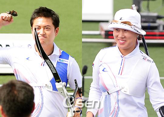 이창환-주현정 개인전 우승, 각각 임동현-곽예지 따돌려 한국 양궁이 4년 만에 리커브 금메달을 싹쓸이했다. 한국은 이창환(27, 두산중공업)과 주현정(27, 현대모비스)이 9일 오후 울산 문수국제양궁장서 열린 제45회 세계양궁선수권대회 남녀개인전서 금메달을 따냈다. 한국은 이미 지난 8일 남녀 단체전 결승서 각각 프랑스와 일본을 꺾고 금메달에 입을 맞춘 상황. 한국은 개인전마저 싹쓸이하며 지난 2005년 제43회 스페인 대회 이후 4년 만이자 지난 1997년 제39회 캐나다 대회를 포함 통산 3번째로 전관왕에 올랐다. 스페인 대회서 한국은 정재헌과 이성진이 개인전서 우승을 차지하면서 단체전도 휩쓸었다. 여자부서 주현정은 곽예지(17, 대전체고)를 113-112로 꺾고 한국이 2007년 독일 대회서 개인전 은메달(박성현)에 그쳤던 아쉬움을 털어냈다. 준결승서 나탈리아 산체스(콜롬비아)를 꺾고 올라온 주현정은 94-93으로 앞선채 맞은 4엔드서 29점(9. 10, 10)을 쏴 동일하게 29점(9. 10, 9)을 쏜 곽예지를 1점차로 꺾고 금메달을 거머쥐었다. 남자부의 이창환은 임동현(23, 청주시청)을 113-108로 꺾고 한국의 개인전 3연패를 이뤄냈다. 준결승서 2008 베이징올림픽 금메달리스트이자 지난 7월 유니버시아드 우승자인 빅토르 루반(우크라이나)을 꺾고 올라온 이창환은 84-82로 마지막 엔드를 맞았다. 이창환은 29점(9, 10, 10)을 쏴 26점(8, 9, 9)을 쏜 임동현을 5점차로 제치고 우승을 차지했다. 한편 남자부 3, 4위전서는 오진혁이 빅토르 루반에 110-111로 패해 동메달 획득에 실패했다. 오진혁은 84-85로 뒤진 상황서 마지막 엔드를 맞았고 26점(9, 8, 9)에 그쳐 동일하게 26점(10, 8, 8)을 쏜 빅토르 루반에게 1점차로 아쉽게 패하고 말았다. 여자부 3, 4위전서는 산체스가 리피아르스카를 105-99로 꺾고 동메달을 따냈다. parkrin@osen.co.kr