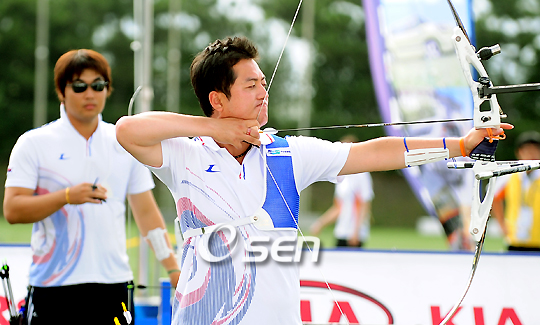 한국 이창환이 9일 오후 울산 문수국제양궁장서 열린 제45회 세계양궁선수권대회 남자개인전에서 금메달을 따냈다. 한국은 개인전마저 싹쓸이하며 지난 2005년 제43회 스페인 대회 이후 4년 만이자 지난 1997년 제39회 캐나다 대회를 포함 통산 3번째로 전관왕에 올랐다. 스페인 대회서 한국은 정재헌과 이성진이 개인전서 우승을 차지하면서 단체전도 휩쓸었다. 이창환이 과녁을 향해 정조준하고 있다./울산=윤민호 기자ymh@osen.co.kr