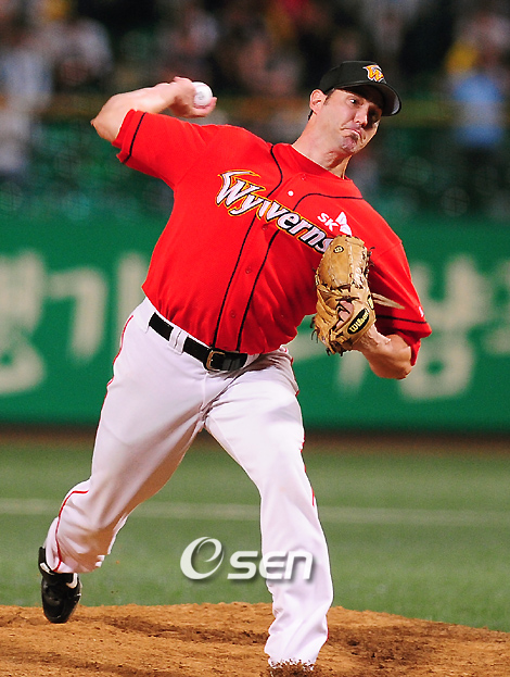 2009 프로야구 1,2위팀인 KIA 타이거즈와 SK 와이번스의 경기가 9일 광주 무등경기장에서 벌어졌다. SK는 정근우의 역전 투런 홈런과 중간 계투의 효과적인 운영으로 3-1로 역전승 파죽의 11연승을 이어갔다.선두 KIA는 5연패의 수렁으로 빠지며 2위 SK와 1게임 차로 리그 1위 자리를 장담할 수 없게 됐다. SK 마무리 글로버가 역투를 하고 있다./광주=손용호 기자spjj@osen.co.kr